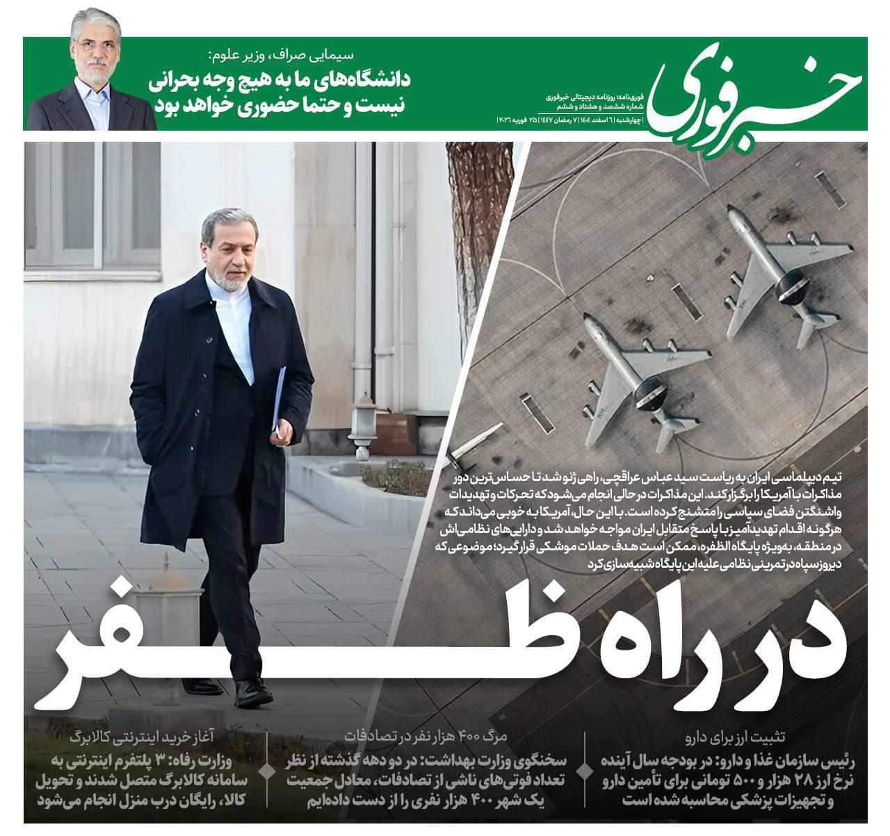 أفادت صحيفة رقمية إيرانية ناطقة بالفارسية بأنّ نقاشاً داخلياً في طهران عاد لطرح خيار توجيه ضربة صاروخية استباقية إلى القواعد العسكرية الأمريكية في دولة الإمارات العربية المتحدة، وذلك قُبيل انطلاق الجولة الثالثة من المفاوضات النووية غير المباشرة بين إيران والولايات المتحدة في جنيف. وذكرت الصحيفة أنّ وحدات من الحرس الثوري أجرت في الأيام الماضية سيناريوهات تحاكي استهداف هذه القواعد، على أساس أنّ هذا الخيار يبقى مطروحاً على الطاولة إذا انهارت المحادثات أو تحوّل التصعيد السياسي القائم إلى مواجهة عسكرية مباشرة.